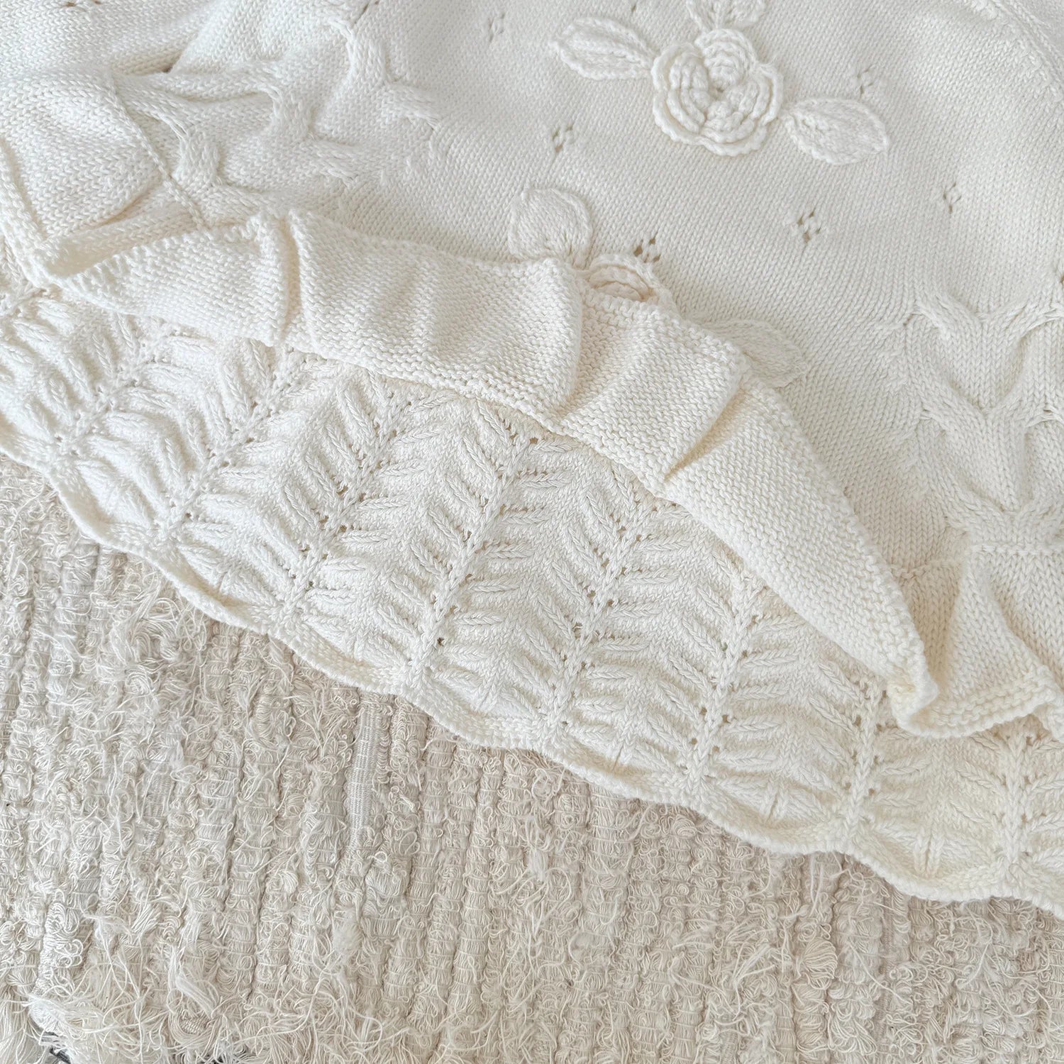 Perfect for everyday moments and special occasions alike, the Éliette sweater pairs beautifully with bloomers, skirts, or layered over dresses — a true essential for a refined baby wardrobe.