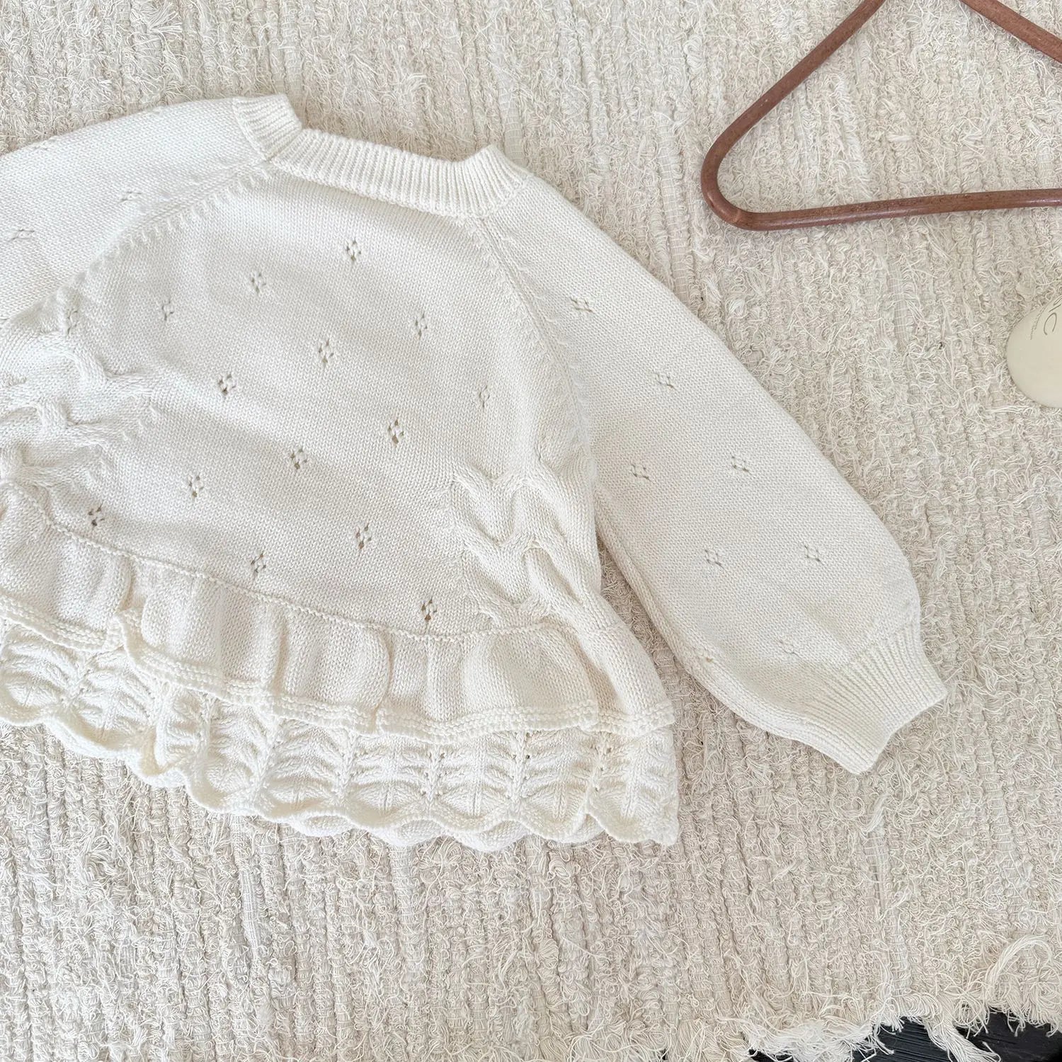 Soft as a whisper and full of charm, the Éliette Knit Sweater is designed for little girls aged 0 to 4 years. Crafted from gentle cotton knit, it offers cozy warmth while remaining light and breathable — perfect for autumn and winter layering.